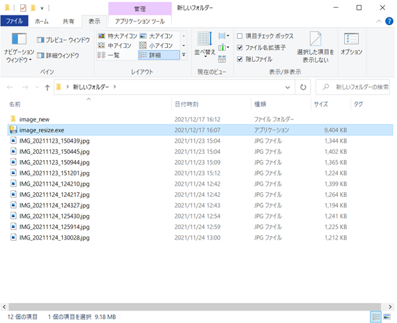 1.画像を保存しているフォルダに実行ファイル(本ファイル)を置く。