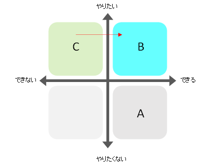 「できること」と「やりたいこと」を二つの軸で表現した図になります。