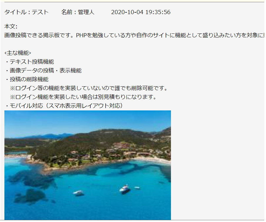 画像投稿できる掲示板です。PHPを勉強している方や自作のサイトに機能として盛り込みたい方を対象に販売しています。